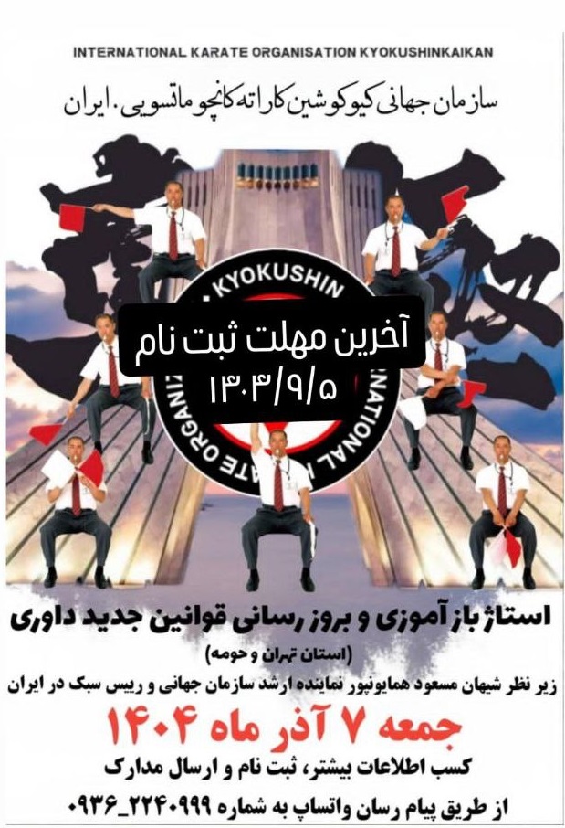 زیر نظر شیهان مسعود همایون پور نماینده ارشد سازمان جهانی و رییس سبک کیوکوشین کاراته کانچو ماتسویی در ایران
